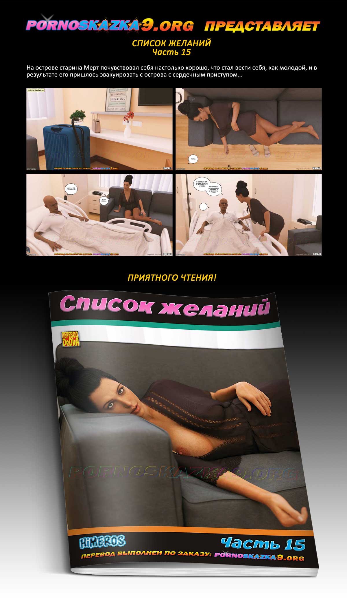 Порно комикс «Список желаний. Часть 15.» На острове старина Мерт почувствовал себя настолько хорошо, что стал вести себя, как молодой, и в результате его пришлось эвакуировать с острова с сердечным приступом…